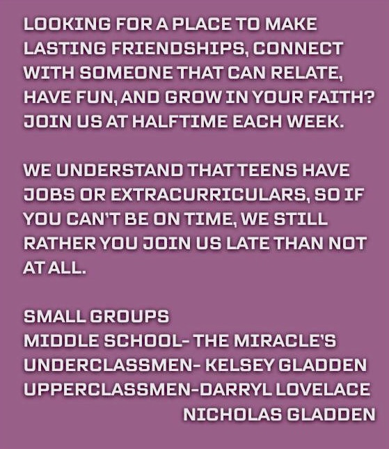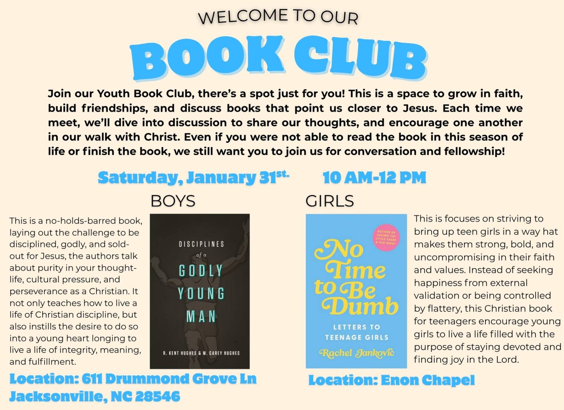 We want all of our youth to know Jesus Christ and to find their ultimate joy and satisfaction in Him. We have designed our youth ministry to deepen understanding of the greatness of our God, and to give encouragement in the pursuit of godliness. Check out our events page to see any upcoming events for the youth of Enon Chapel Baptist Church. Each Wednesday evening the Youth come together to discover life changing discoveries from God’s Word.