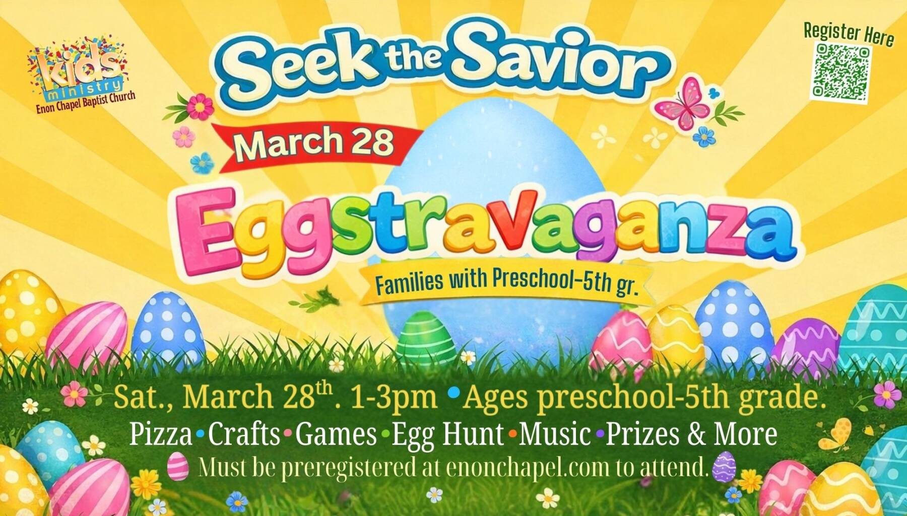 Easter is right around the corner, and we couldn’t be more excited to celebrate the resurrection of Jesus! This year, we are hosting the Seek the Savior Eggstravaganza! Families with children preschool-5th grade are invited to join us on March 28th from 1:00–3:00 p.m. for this one-of-a-kind Easter egg hunt designed to help children understand the gospel of Jesus in a clear and meaningful way.
